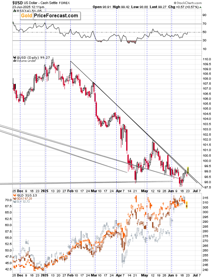 The currency market, however, has registered a notable movement. The USD Index, for instance, has seen a significant uptick, breaking above its declining resistance line, a major technical signal hinting at bullish momentum for the U.S. dollar. This development stands in stark contrast to gold’s performance, traditionally seen as inversely proportional to the value of the dollar.