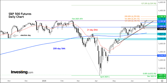 Analyzing the situation from a technical standpoint reinforces the bullish sentiment. The S&P 500 futures, for example, have convincingly broken past the peak observed in February, suggesting a potential for the index to continue its upward movement unabated. Market dynamics indicate several key levels, ranging from 6,150, representing a significant Fibonacci extension point, to 5,959, which if breached, could necessitate a reevaluation of the bullish outlook. Should the market momentum persist, reaching or even surpassing the 6,200 mark appears to be within the realm of possibility.