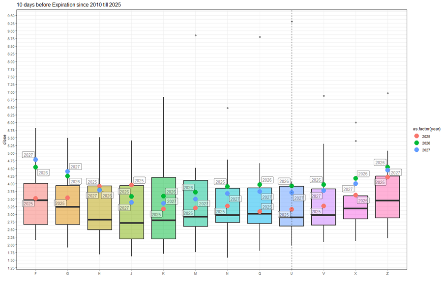 Historical comparisons provide a context for understanding. An examination of price dispersion in the lead-up to contract expirations since 2010 reveals the market’s current steadiness in a broader temporal framework. The alignment of recent contract expirations with the long-term median underscores a return to a semblance of equilibrium after periods of volatility.